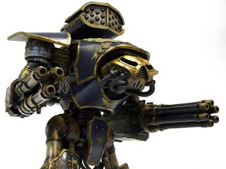 Picture: a new Forge World Reaver Titan (this was NOT painted by BTP). I just love the look and feel of this model. I thought it was smaller than a Warhound, but evidently it is a lot larger. At $1100 it is really quite a large purchase. Well, a guy can dream!